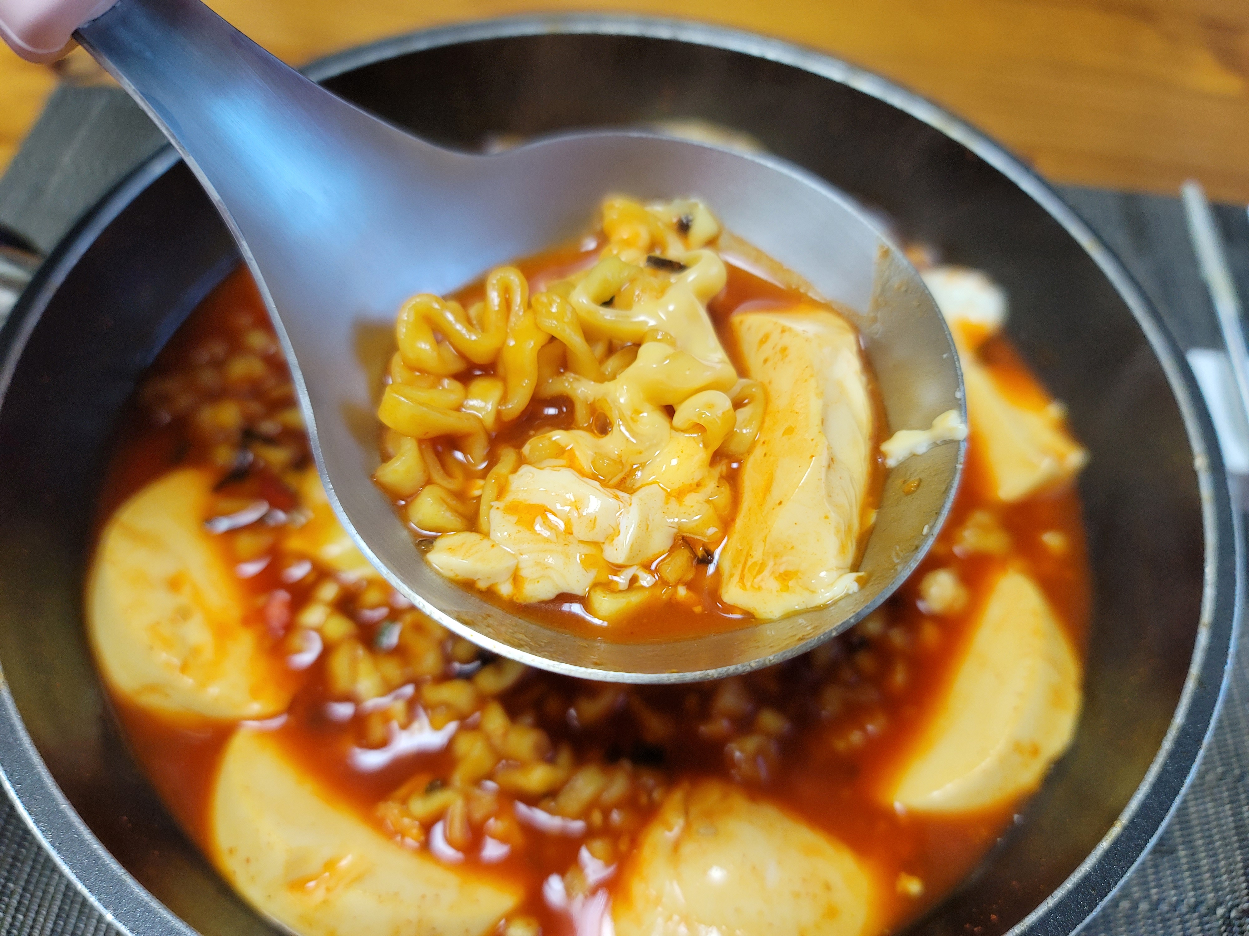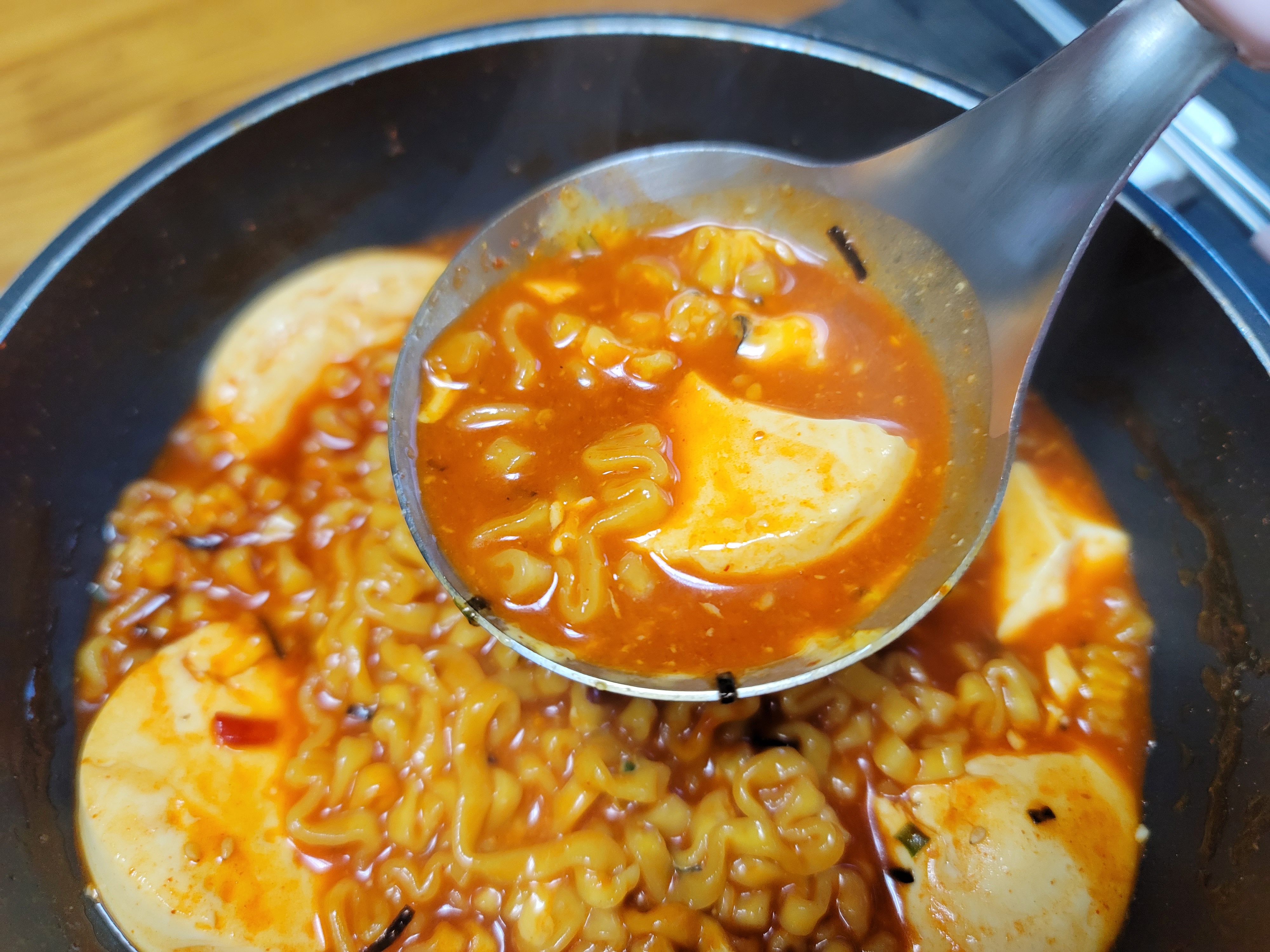 거기에 분말스프를 넣으면 국물이 약간 걸죽해지는데 이게 그렇게 순두부와 찰떡궁합이더라고요. \