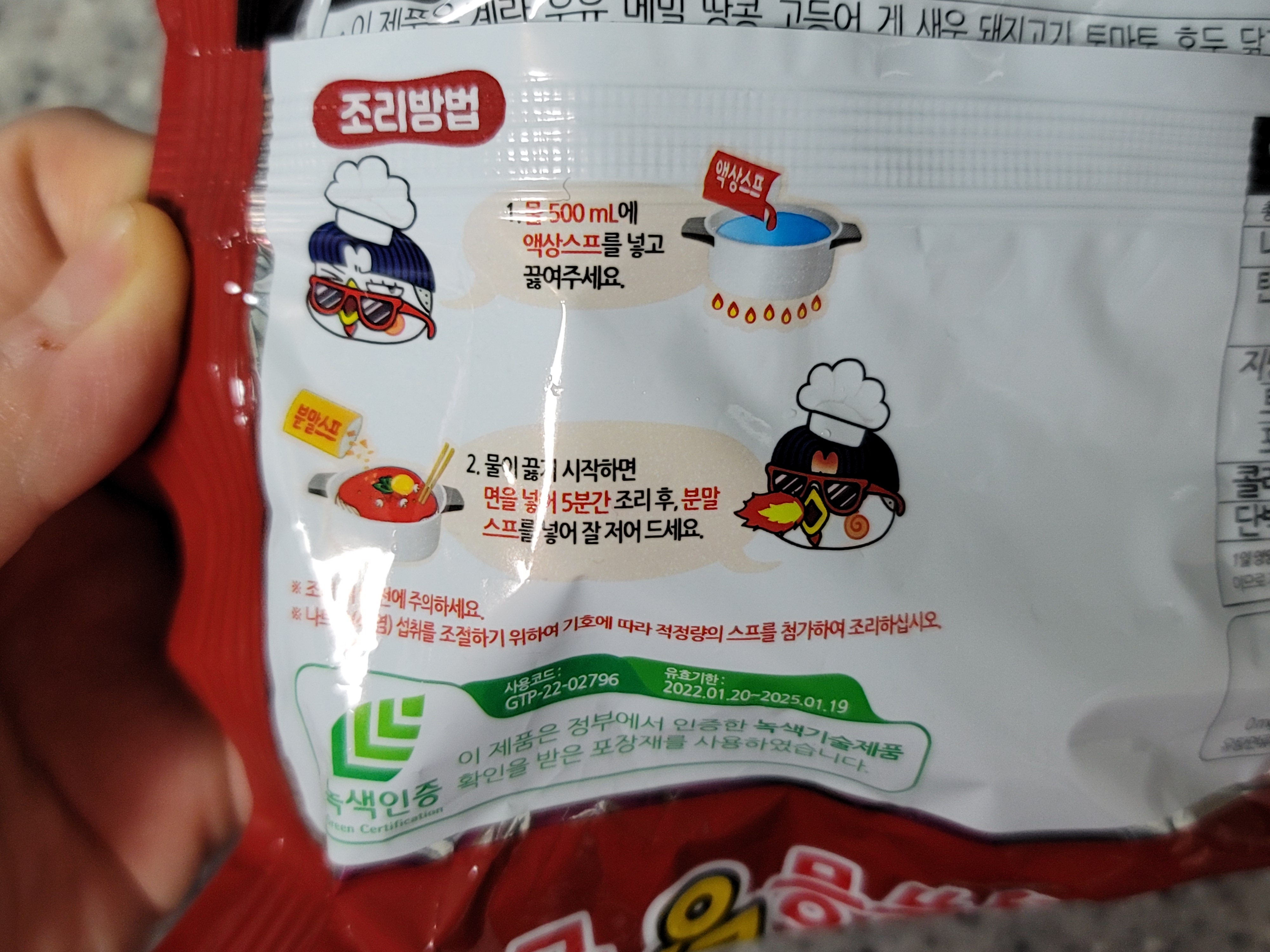 불닭볶음탕면 조리방법은 물 500ml에 액상스프럴 넣고 끓여주다 물이 끓기 시작하면 면을 넣어 5분 더 끓여준다음 마무리로 분말스프를 넣어 잘 저어주면 땡!