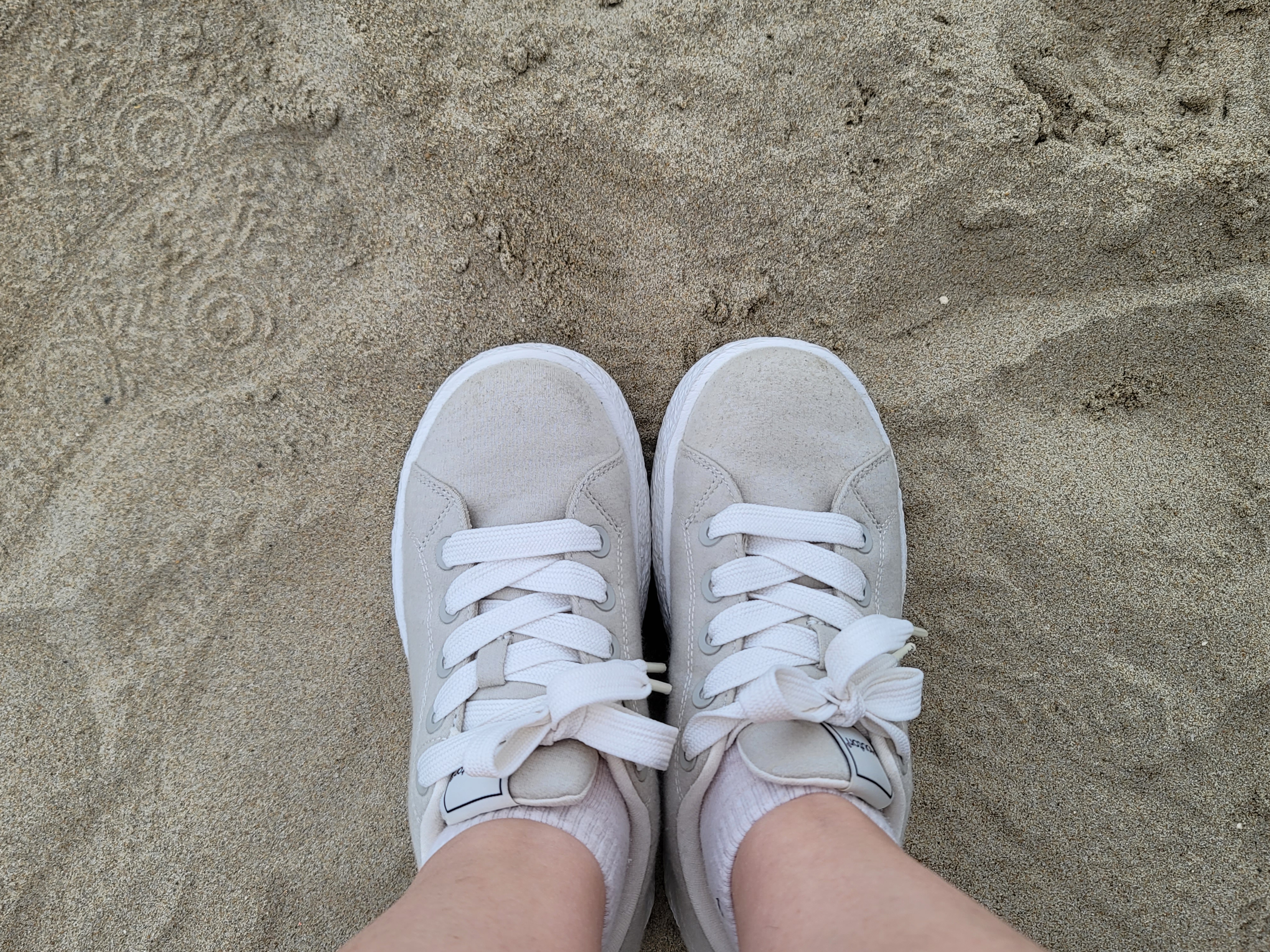 뭔가 좀 두툼한 느낌이 이어서 여름에 더울까 걱정했는데 생각보다 발이 그렇게 덥지 않았고 겨울에 발이 많이 시렵지 않아서 신기했어요 ㅎㅎ 하지만... 이거 신고 바다모래사장을 걸었더니 신발에 모래가 끼이는거 있죠;;; 섬유사이에 박혀서 당황! 밖에 나와서 탕탕 털으니 좀 가시긴 했는데 한참을 광안리해변모래는 함께 다녔다는 후문입니다ㅋㅋㅋ