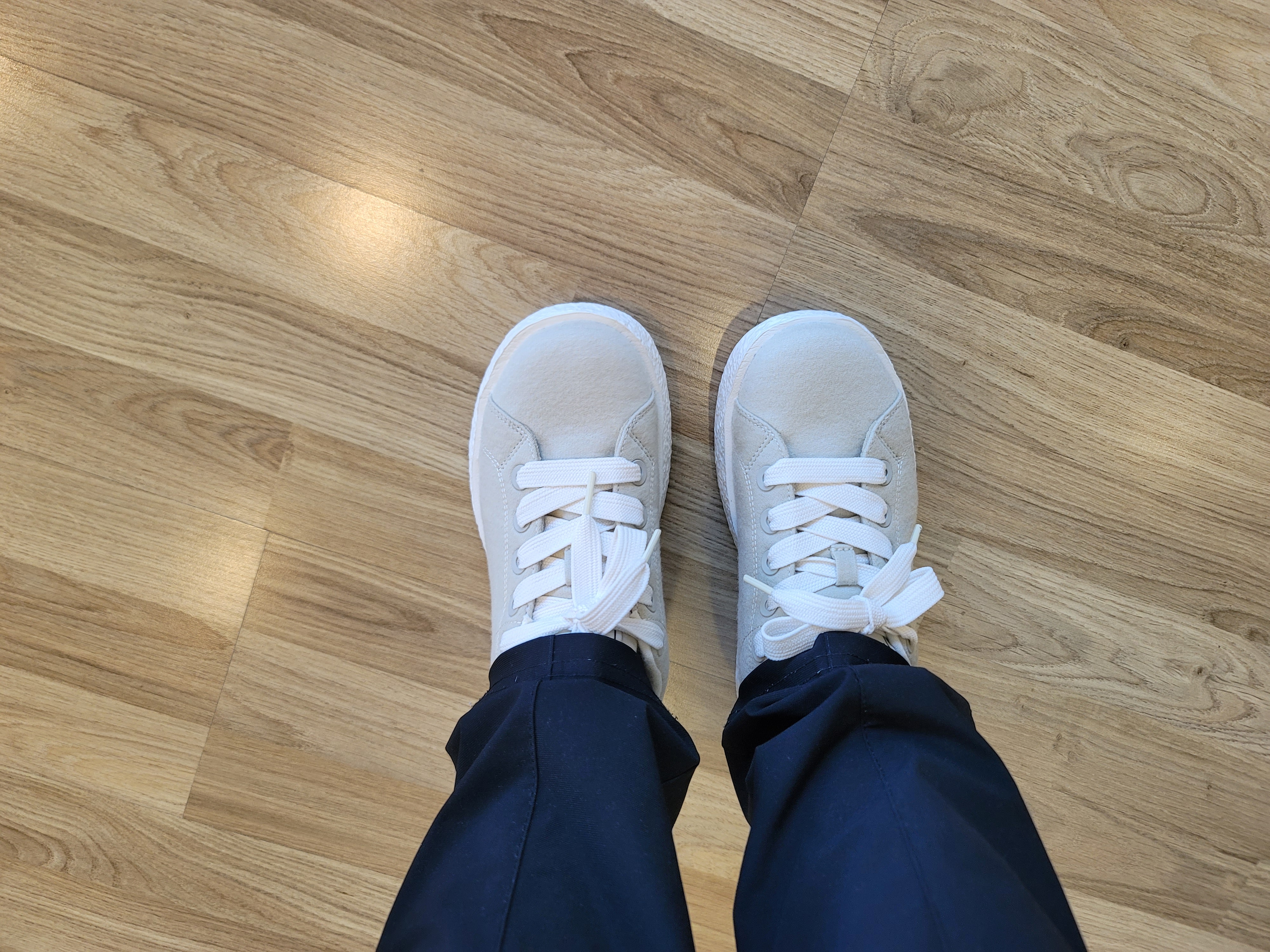 그리고 신발을 덮고 있는 메리노을 소재가 푹신해서 재봉선이나 신발끈 쪽 자극도 거의 없었답니다. 다만 신발 뒷축이 약간 올라와 있는 편인데 아무리 소재가 부드러워도 맨발이나 발목양말을 신고 오래걸으면 뒷꿈치 쪽이 계속 쓸려 저처럼 피부야 약하신 분들은 자극이 있을 수 있어요.