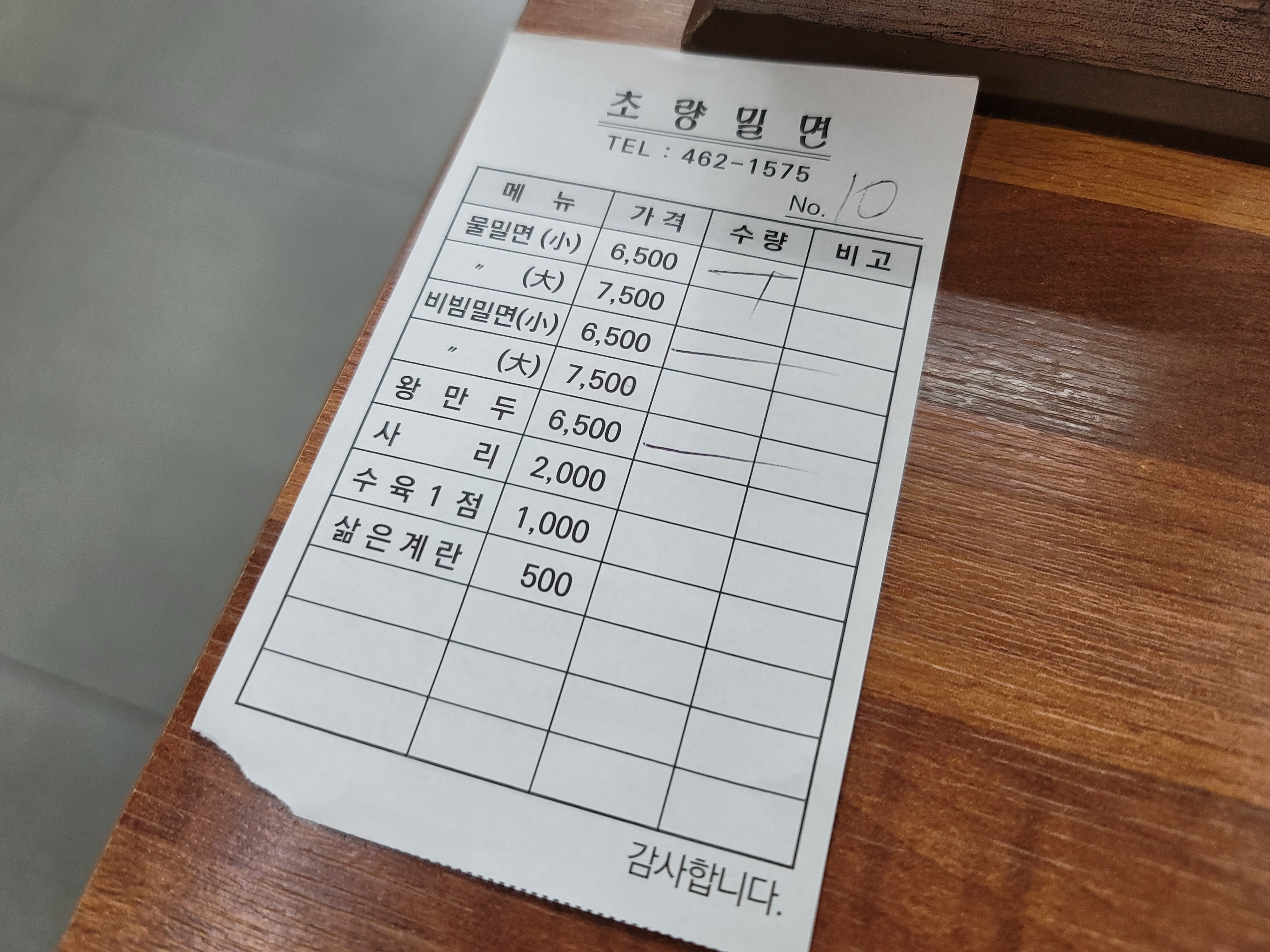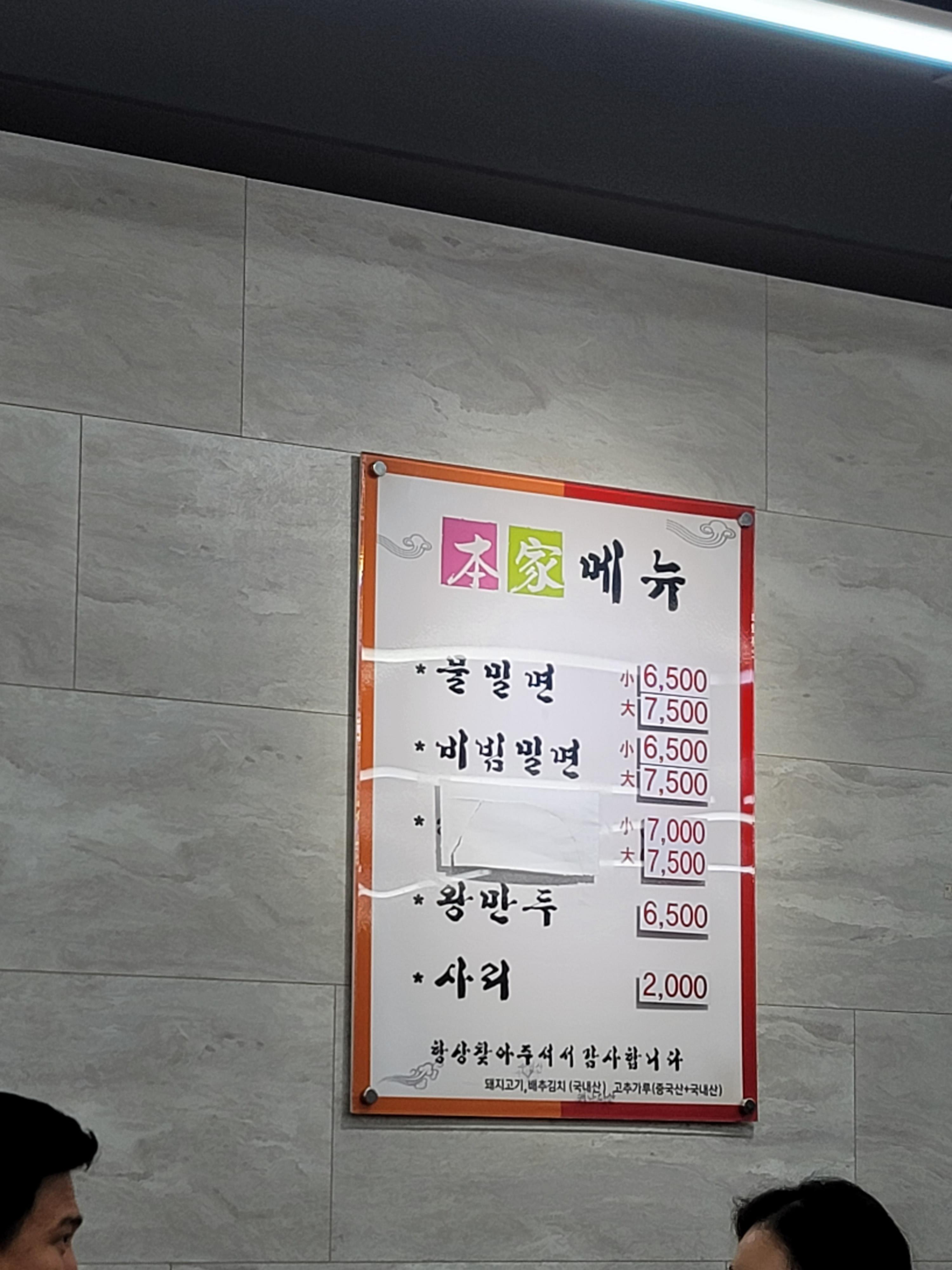 메뉴는 물밀면, 비밀빌면 왕만두가 메인이로 사리나 수육1점 삶은계란을 추가할 수도 있었어요. 그런데 가격이 정말 저렴하더라고요.. 안양에서 유명한 밀면집은 기본한그릇이 만원인데 기본 소가 6,500원 대가 7,500원이라니... 부산 밀면 맛집인데 가성비까지 좋으면 사랑할 수 밖에 없지요 ㅋㅋ 저희는 물밀면 2개 비빔밀면1개 왕만두1개를 주문했어요!