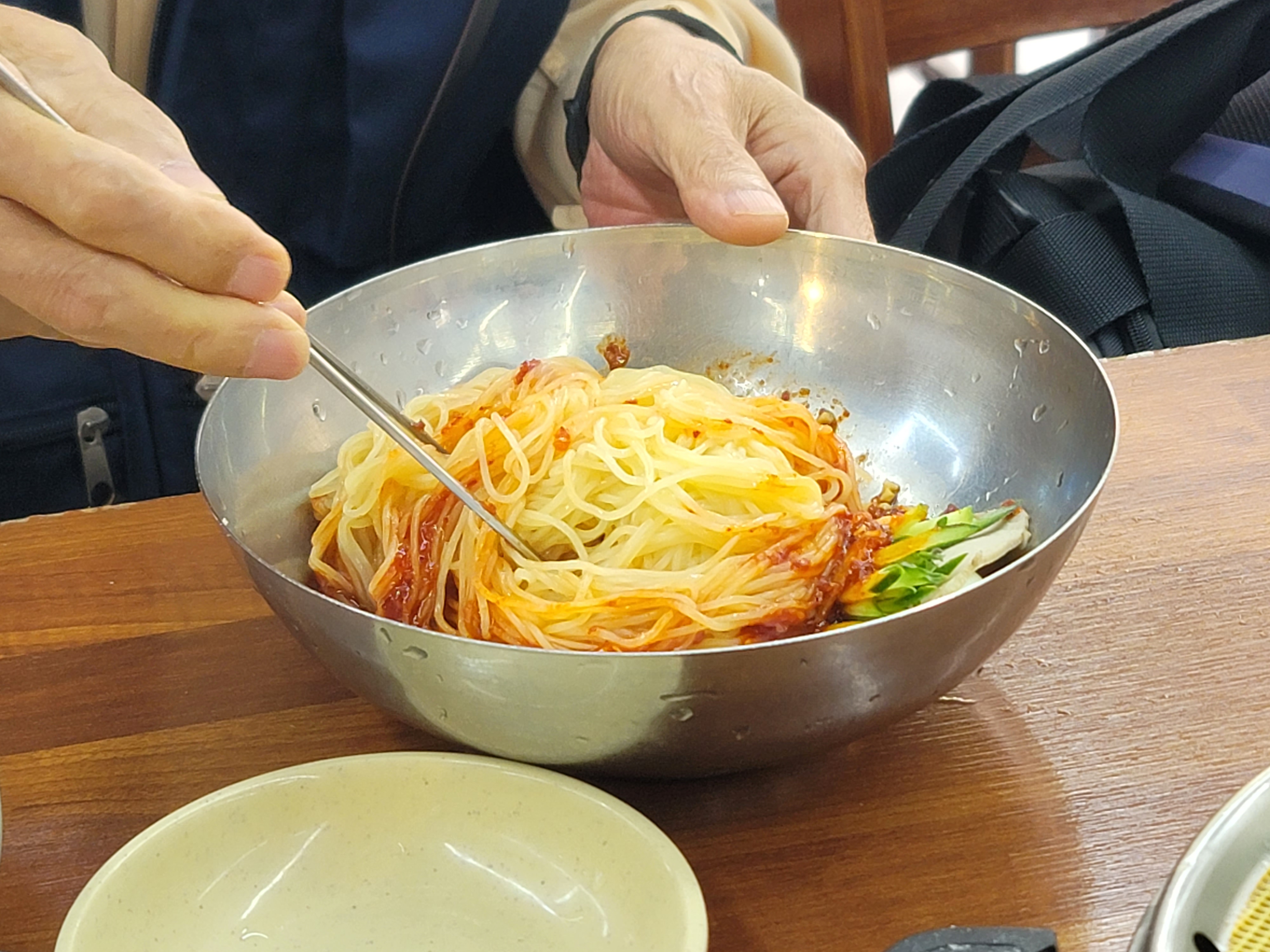 아버님은 비빔으로 주문하셨는데 면이 질기지 않아서 가위질 한번만 해도 불편함 없이 잘 드시더라고요.