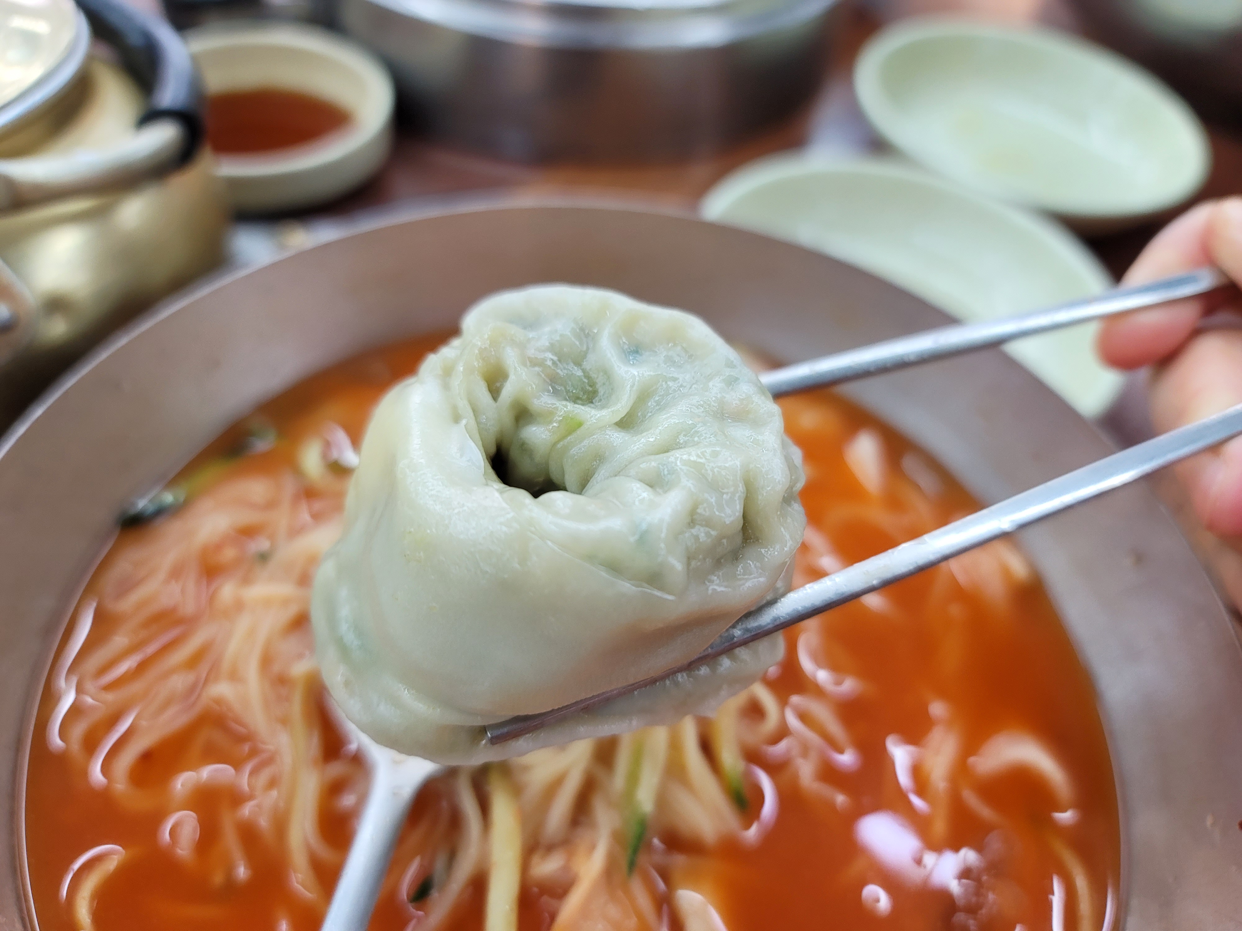 만두는 소가 가득차있고 피가 얇으면서 쫀독했는데요. 맛이 담백하면서도 소에 포슬한식감이 좋았어요. 먹다보니 만두만 포장해가시는 분들도 있어서 신기했는데 이해가 되었어요ㅎㅎ 이게 차가운 밀면이랑 같이 먹으면.. 말해뭐하겠어요?ㅋㅋ 왕만두는 꼭 같이 드시길 추천드립니다ㅎㅎ